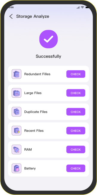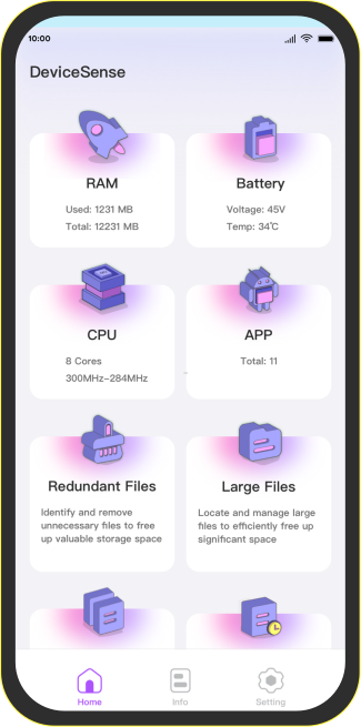File Management: Supports finding redundant files, large files, duplicate files, recently accessed files, and more, helping users efficiently manage device storage.